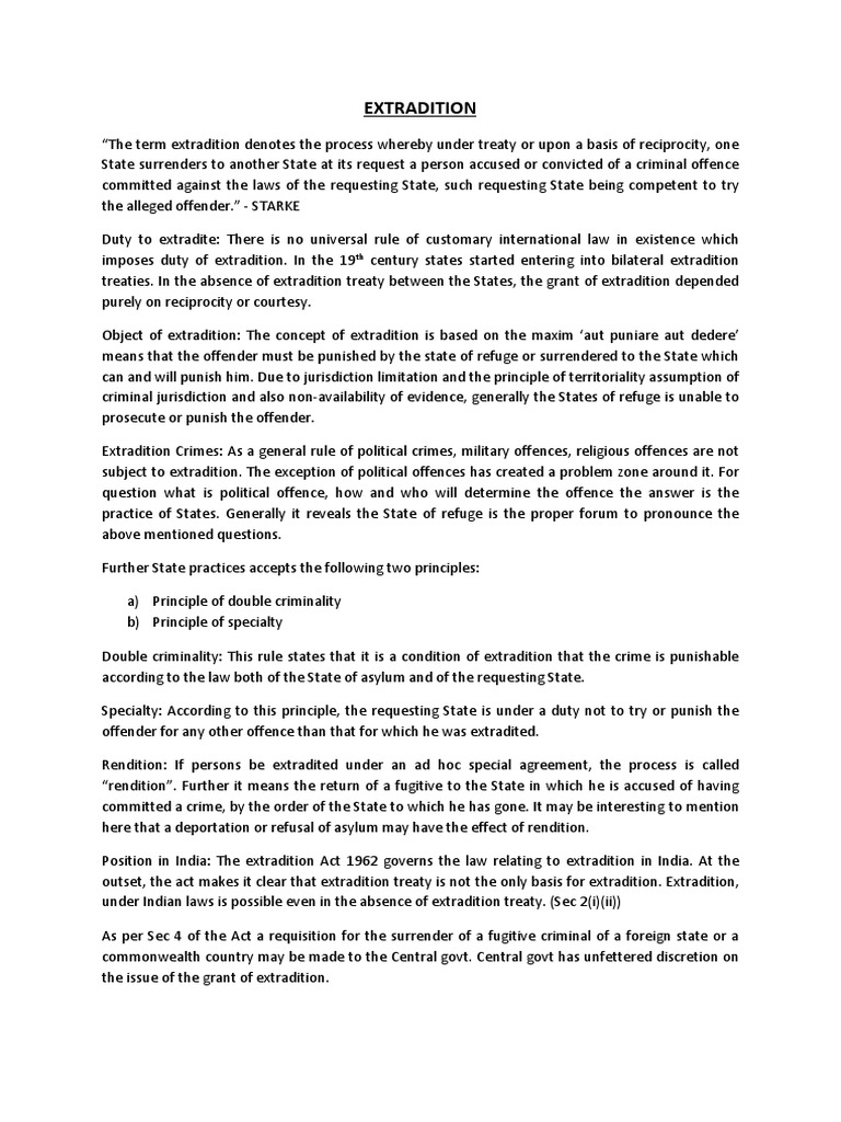 Commonly, the crime for which the person is to be extradited may be a bar to extradition, either because it is not illegal in the country that would surrender the person, or because. Well, if you live in the countryside of itta bena, mississippi, that's not at all the case. Extradition is essentially a request from 'country a' for someone in the jurisdiction of 'country b' who 'country a' wants to charge with a crime how many people have been extradited? Under this approach the act in question must be a crime under the laws of both the usa and the country where the fugitive is taking refuge. Extradited = shipped back to the state or in some cases, the country where the crime was committed for sentencing.